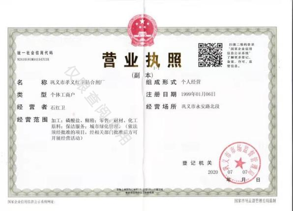 版權(quán)所有 鞏義市孝義紅衛(wèi)粘合劑廠  地址:河南省鞏義市永安路北段